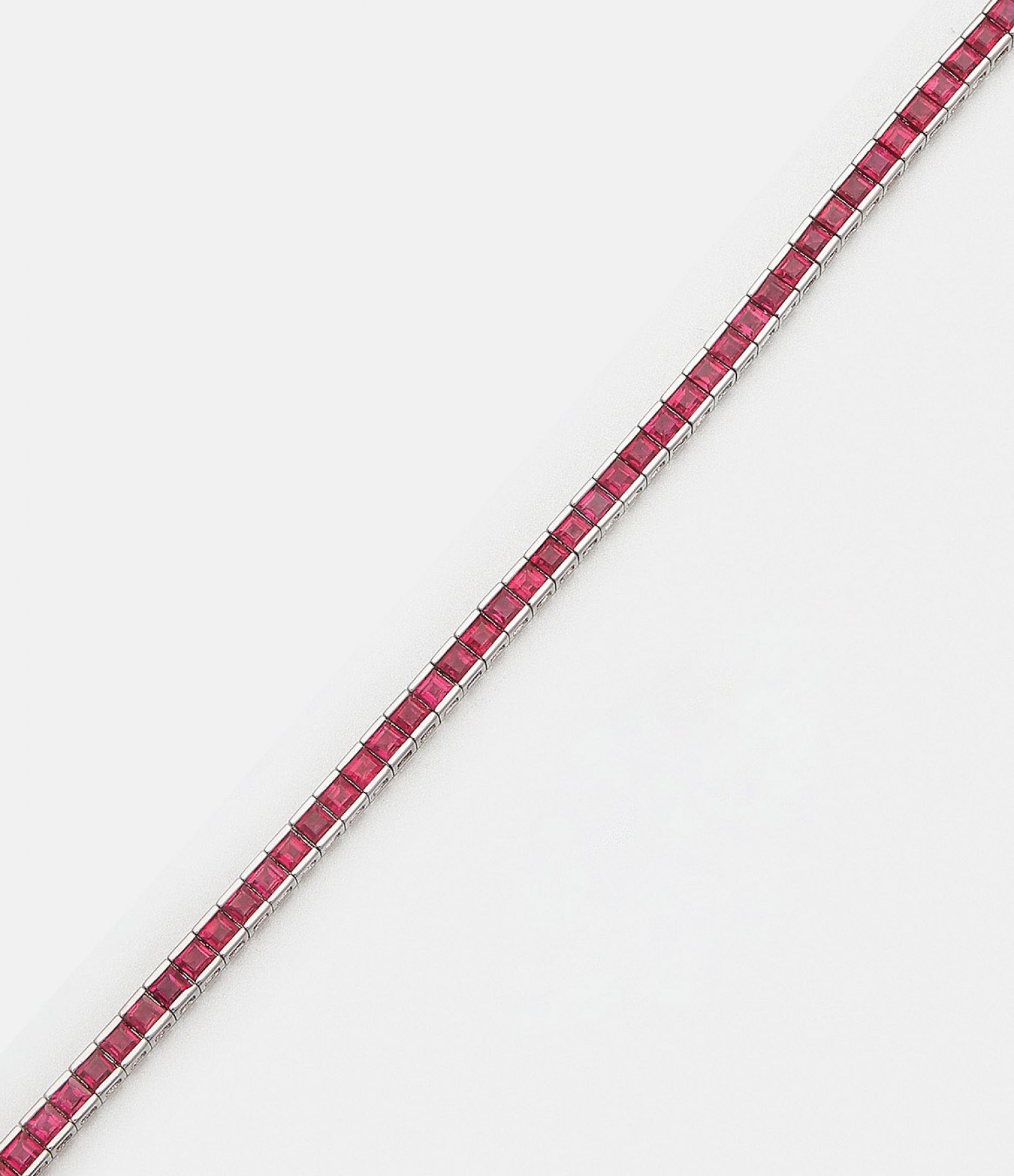 Hochfeines Burma-Rubin-Rivière-Armband Weißgold, gest. 750. Linear besetzt mit taubenblutroten Rubinen von zus. ca. 5,70 ct.; Gew. ca. 13,30 g.