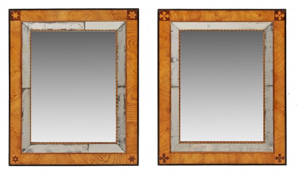 A pair of Bohemian ash wood Biedermeier mirrors.