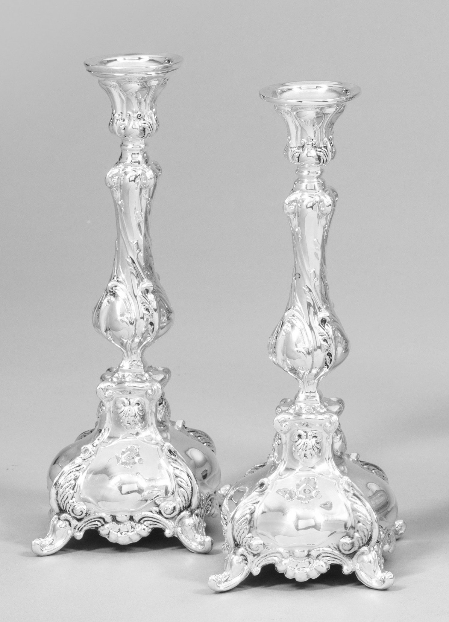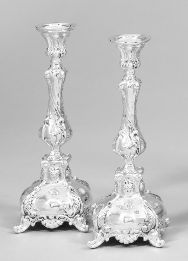 An Israelian pair of Sterling silver Baroque style weighted candlesticks. Standard mark 925 maker´s mark.