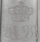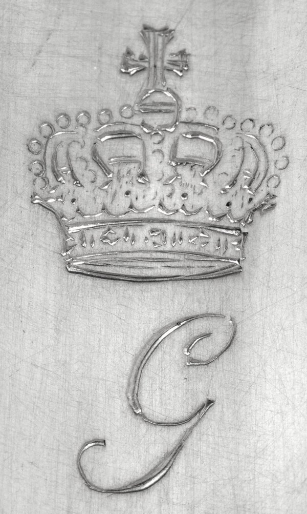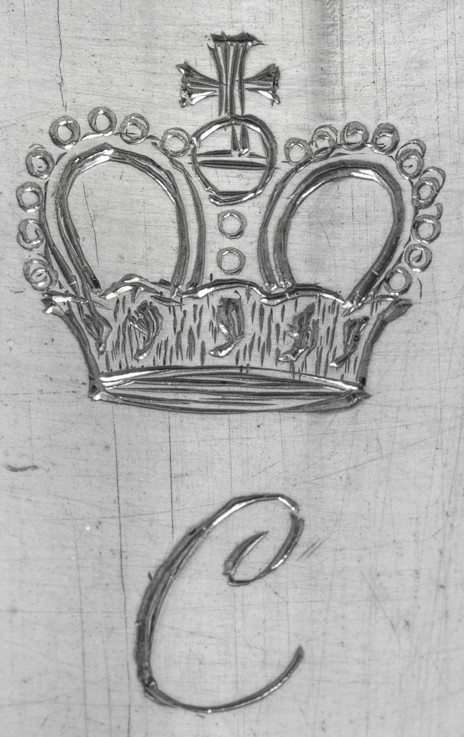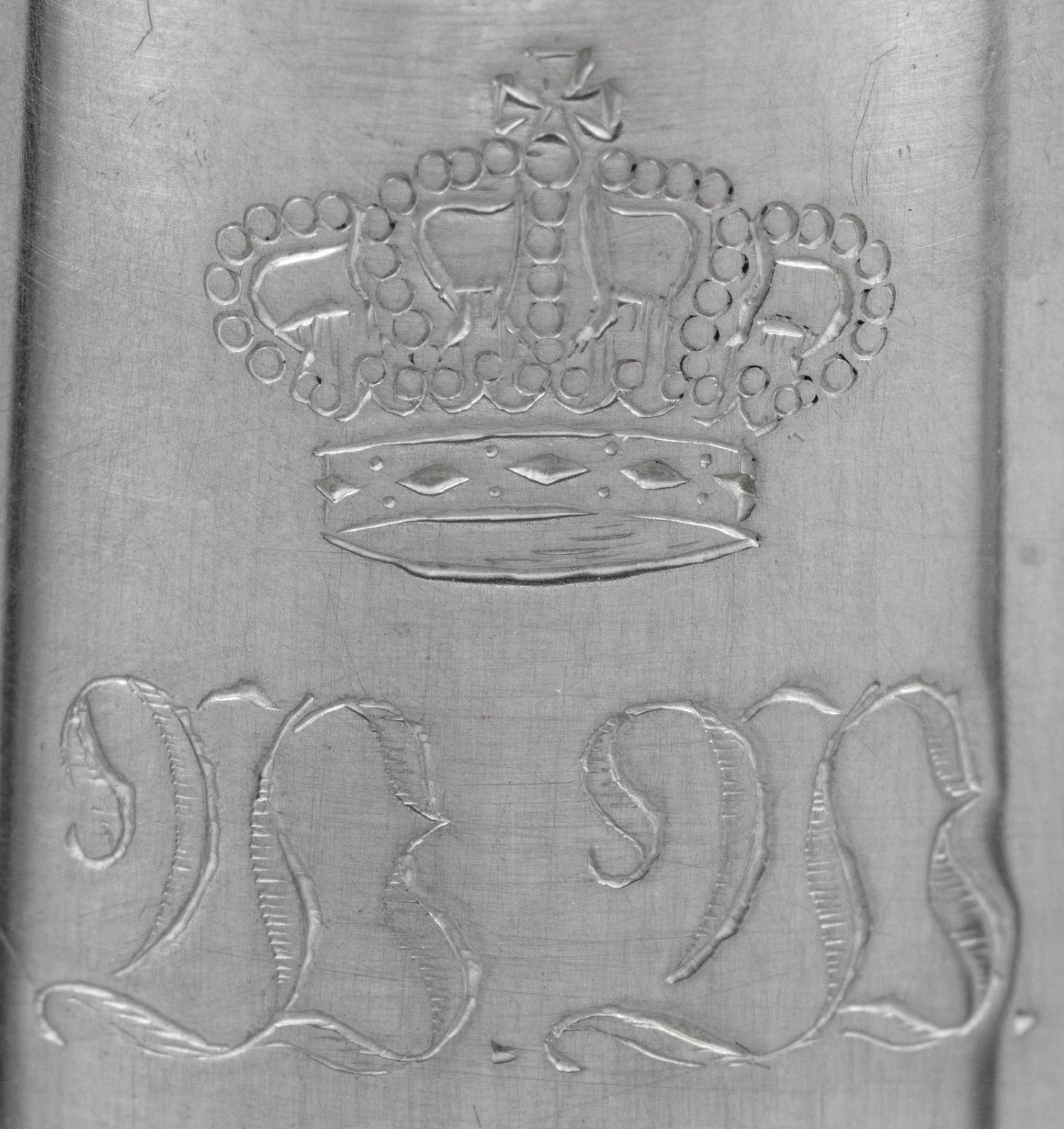 Eine vergleichbare, weißsilberne Kanne befand sich mit derselben Punzierung in der Herzoglichen Silberkammer in Dessau, wie auch eine vergleichbare Platte mit Wappen, Initialien und Datierung "1817". Vgl. Rosenberg Nr. 1621, 1622, 1624, 1628, 1638, 1642.