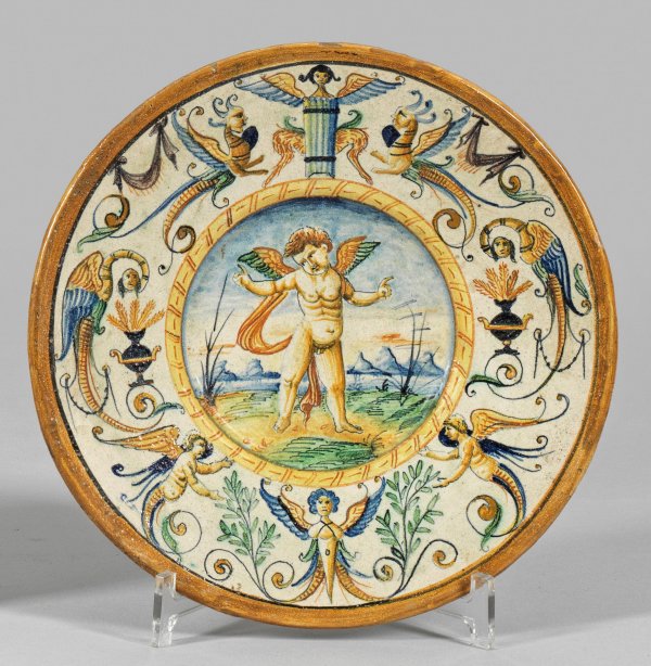 Lot 272: Kleiner Renaissance-Majolikateller mit Engel