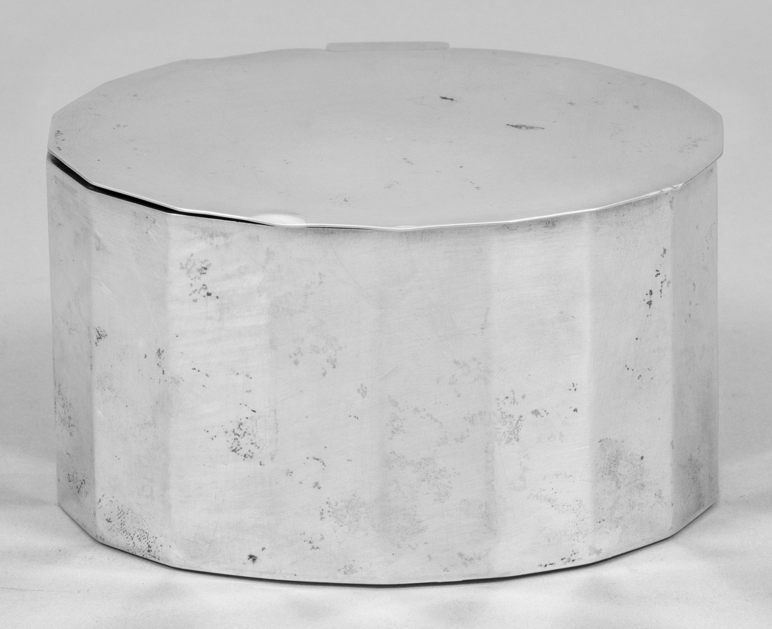 Jugendstil-Zuckerdose Silber. Ovale Form. Elegant, 18-fach facettierter Korpus mit flachem, korrespondierendem Scharnierdeckel. Innen Restvergoldung. Altersbedingte Gebrauchsspuren. Gest., Beschaumarke, Meistermarke "A x S". Gew. ca. 364 g. H. 7,8 cm. 12,9 cm x 11 cm.
