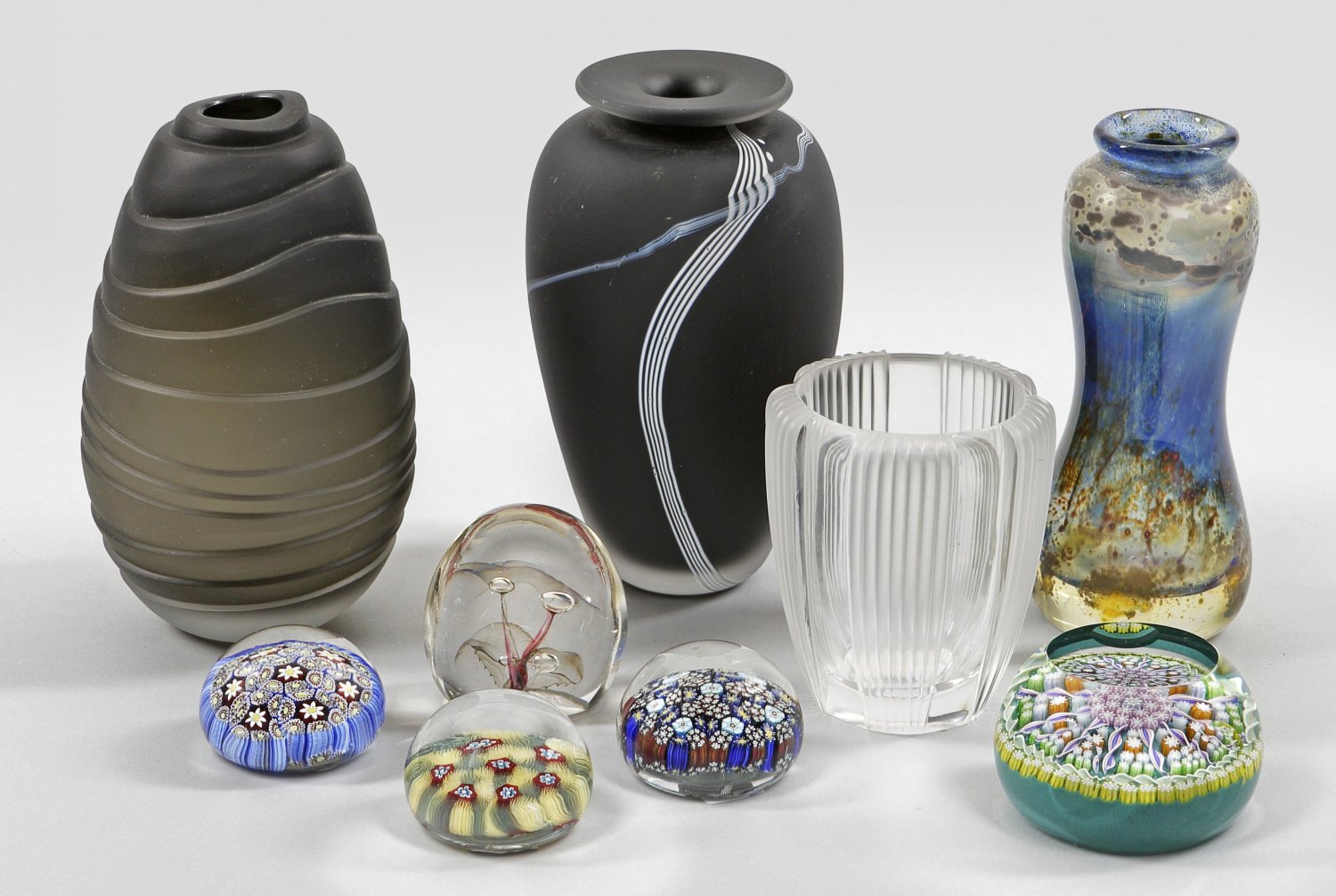 Lot 410: Sammlung von vier modernen Vasen und fünf Paperweights