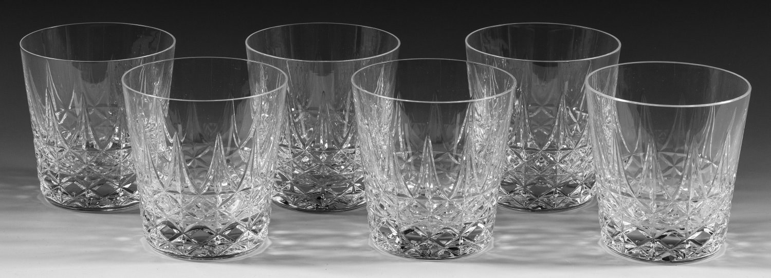 A set of six French Saint-Louis "Tarn" whisky glasses. One glass with acid factory mark.