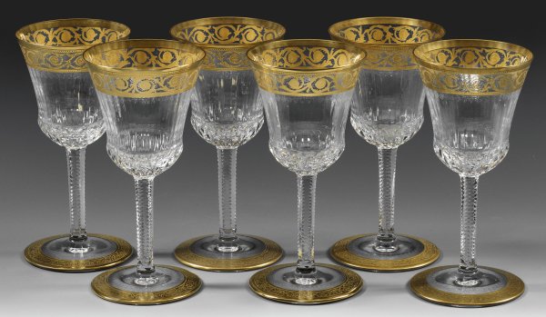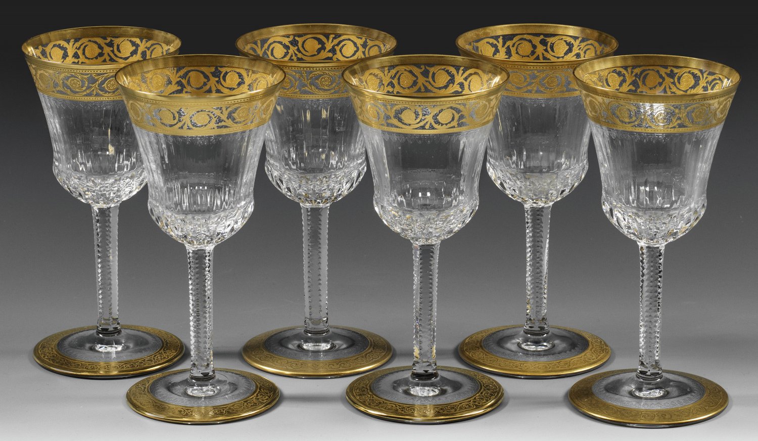 Lot 66: Satz von sechs Saint-Louis-Weingläsern "Thistle Gold"