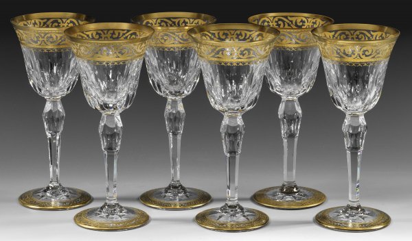 Lot 68: Satz von sechs Saint-Louis-Weingläsern "Stella Gold"