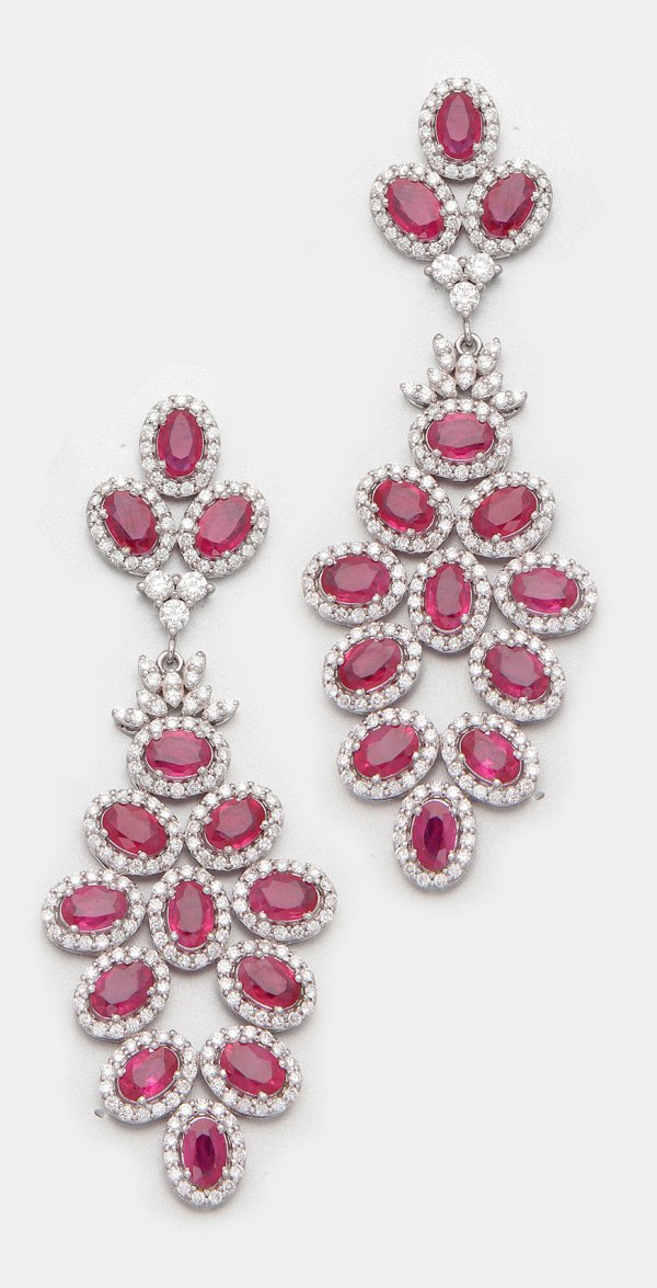 Pair of earrings set with pigeon blood red rubies approx. 11,98 ct. and diamonds approx. 4,17 ct., in 18 k white gold.