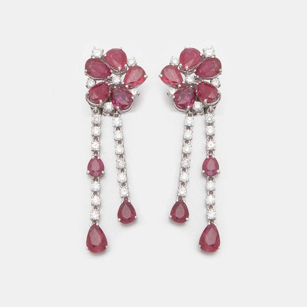 Lot 1118: Paar repräsentative Rubin-Brillantohrringe