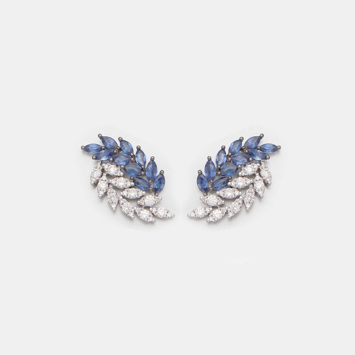 Pair of earrings set with cornflower blue sapphires approx. 1,60 ct. and diamonds approx. 0,47 ct. (G/vs1), in 18 k white gold.