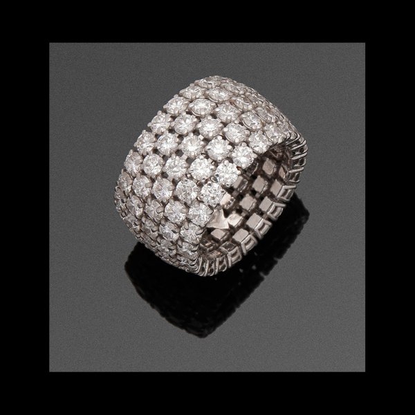 Ring set with diamonds approx. 8,70 ct. (F/vs), in 18 k white gold.