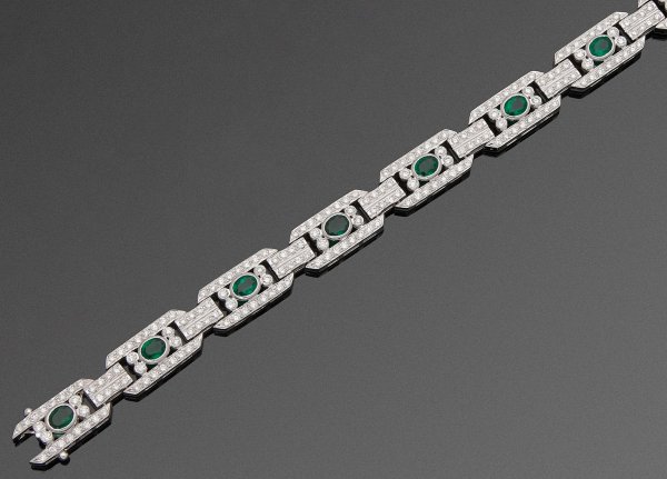 Lot 1149: Glamouröses Smaragd-Diamantarmband