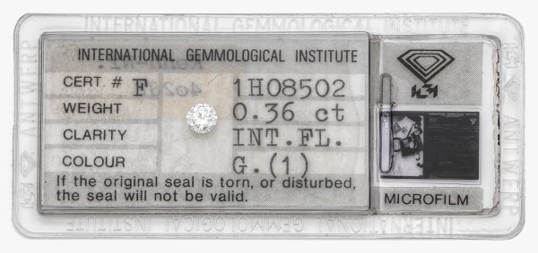 Unset brilliant solitaire approx. 0,36 ct. (G/if). Certificate included.