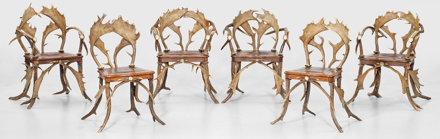 A set of six German antler furniture.