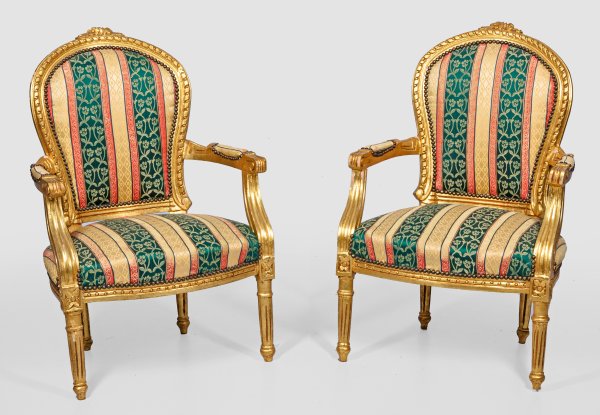 A pair of Italian gilt wood Louis XVI style armchairs.