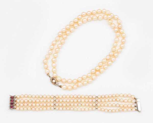 Lot 2843: Perlsautoir und -armband