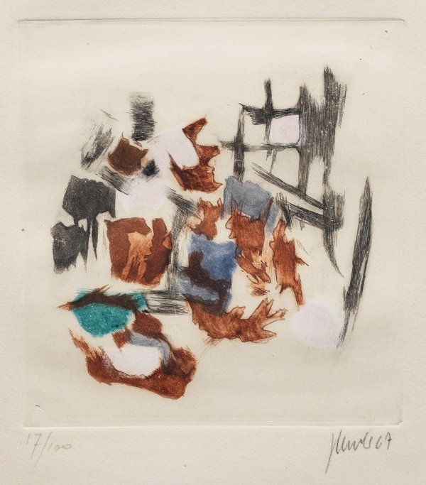 Aquatint and etching in colours on wove paper. Hand-signed, dated (19)67 and numbered 17/100. Minor flaws.