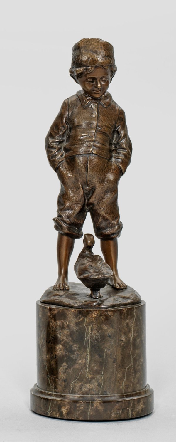 Bronze, braun patiniert. Sign.; Serpentinsockel, ger. best.; Ges-H. 35,5 cm.