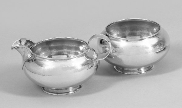 A puristic German silver creamer and sugar bowl. Gilt inside. Standard mark 835, unknown maker´s mark.