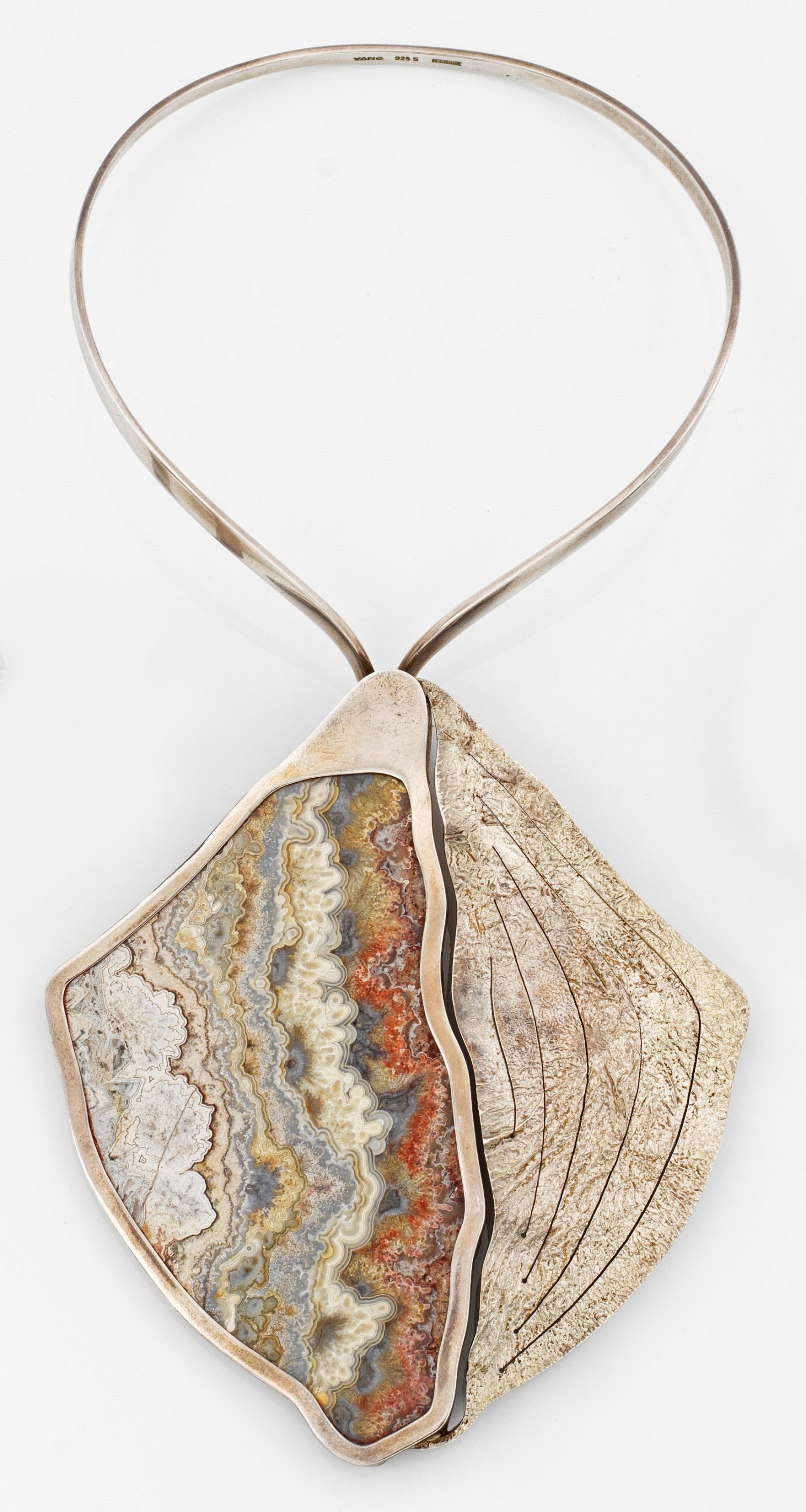 Choker with agate pendant by Jorge Peter Vang, in Sterling silver. Maker's mark.