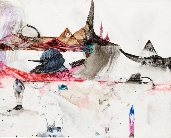 Tusche, Bleistift und Firnis/Holz. Verso sign. und dat. 2007 sowie mit Galerieetikett. 23,5 cm x 29 cm.
