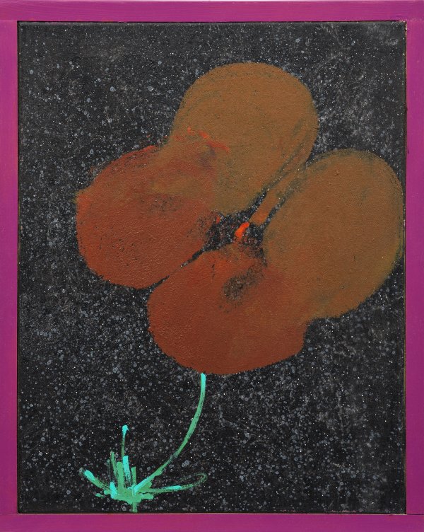 Auf schwarzem, weiß-gesprenkeltem Untergrund eine Blüte mit großen, braunen Blütenblättern und zartem Stiel. Pfeiffer studierte 2005 bis 2011 an der Universität der Künste in Berlin bei Valérie Favre und als Meisterschüler bei Thomas Zipp. Acryl/Lwd.; Rücks. mit Widmung "für Oliver + Marita (/) von Stefan (sign.) und Erika" u. dat. 2013. 50 cm x 40 cm.