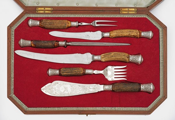 Lot 2472: Viktorianisches Jagdvorlegebesteck
