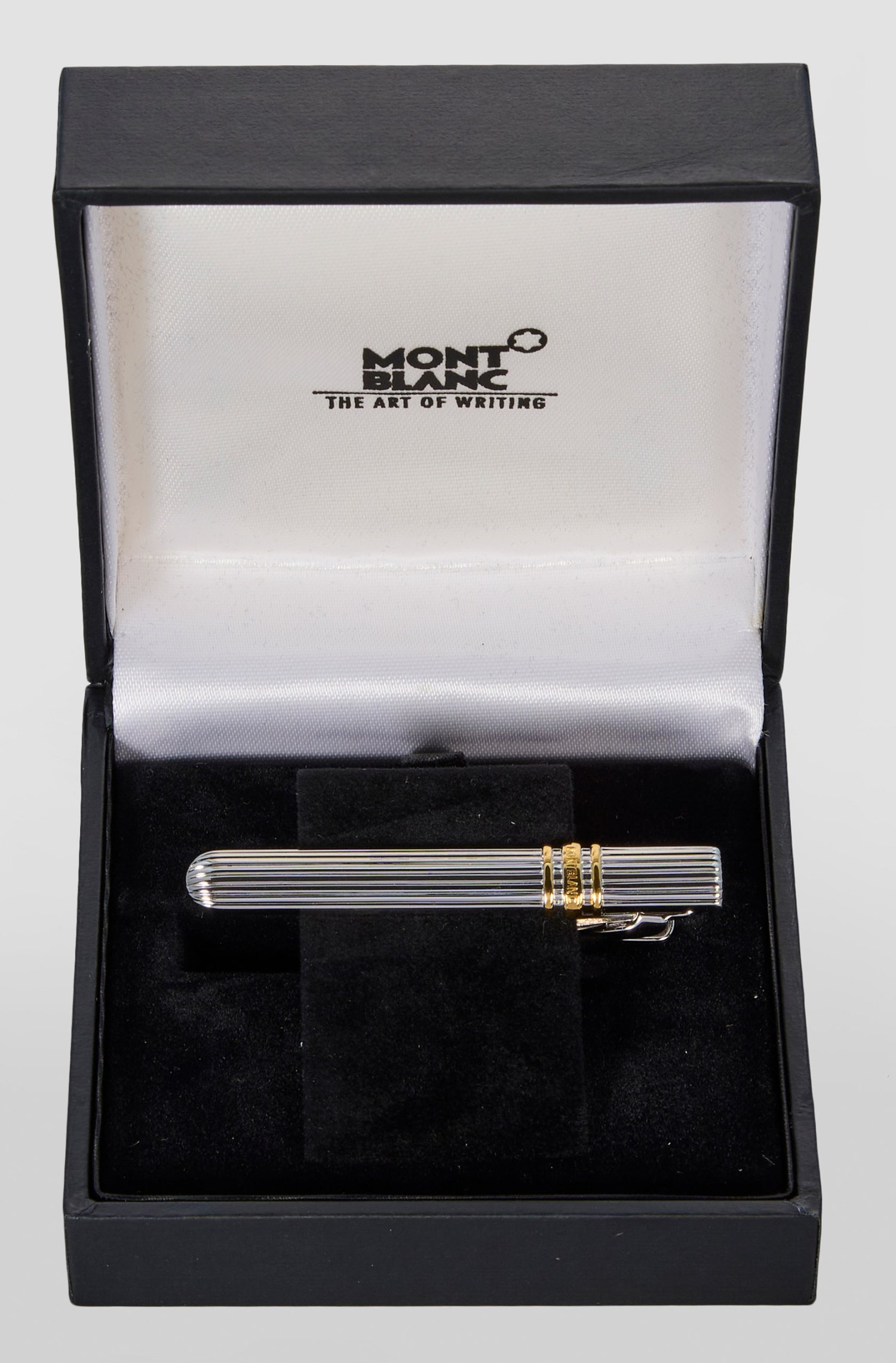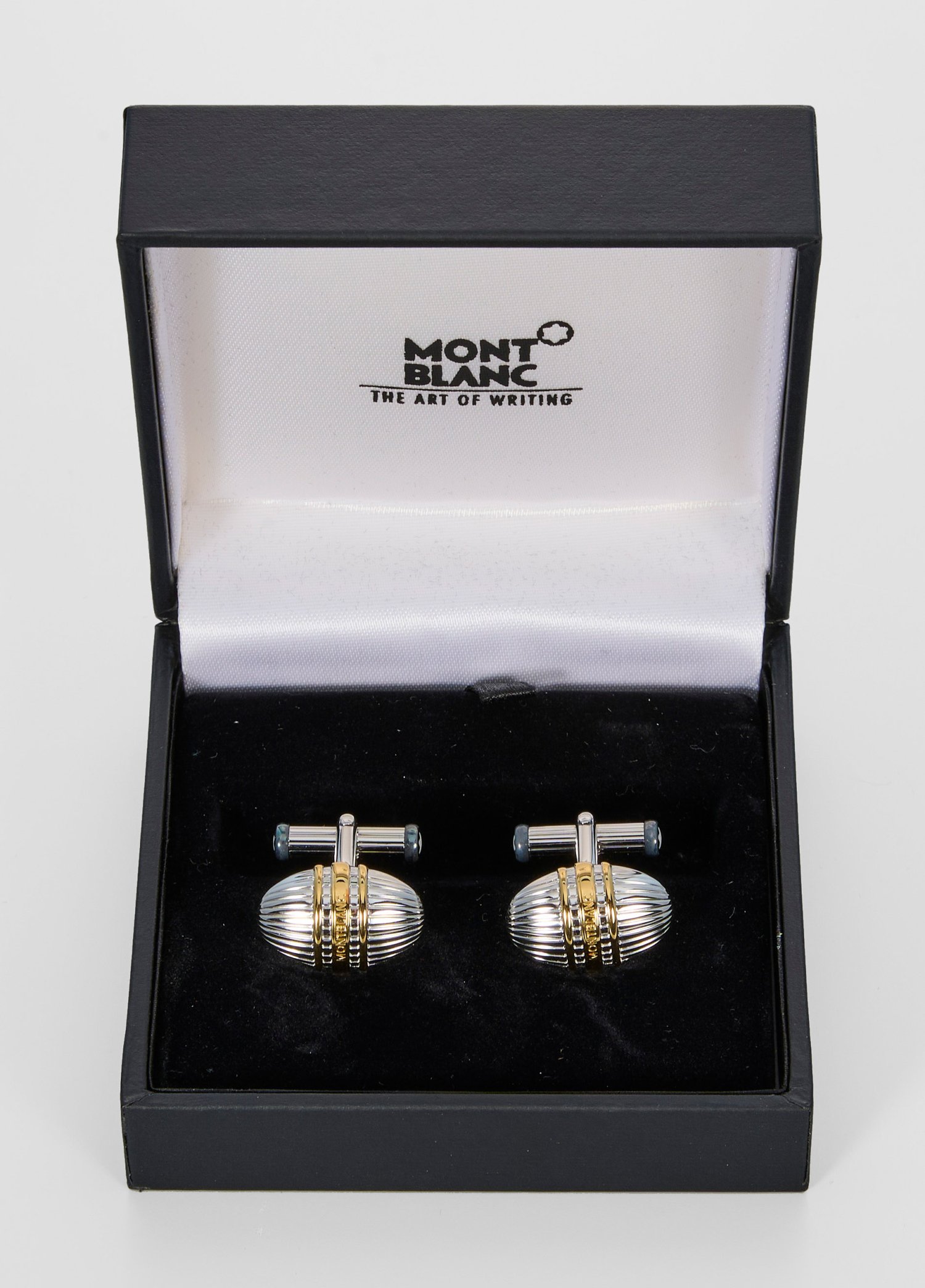 A Vintage Montblanc set, with pair of cufflinks and tiebar. Sterling silver 925, parcel-gilt. Manufacturer's mark. Original boxes and papers.