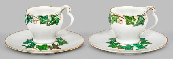 Lot 204: Paar Jugendstil-Mokkatassen mit Efeudekor