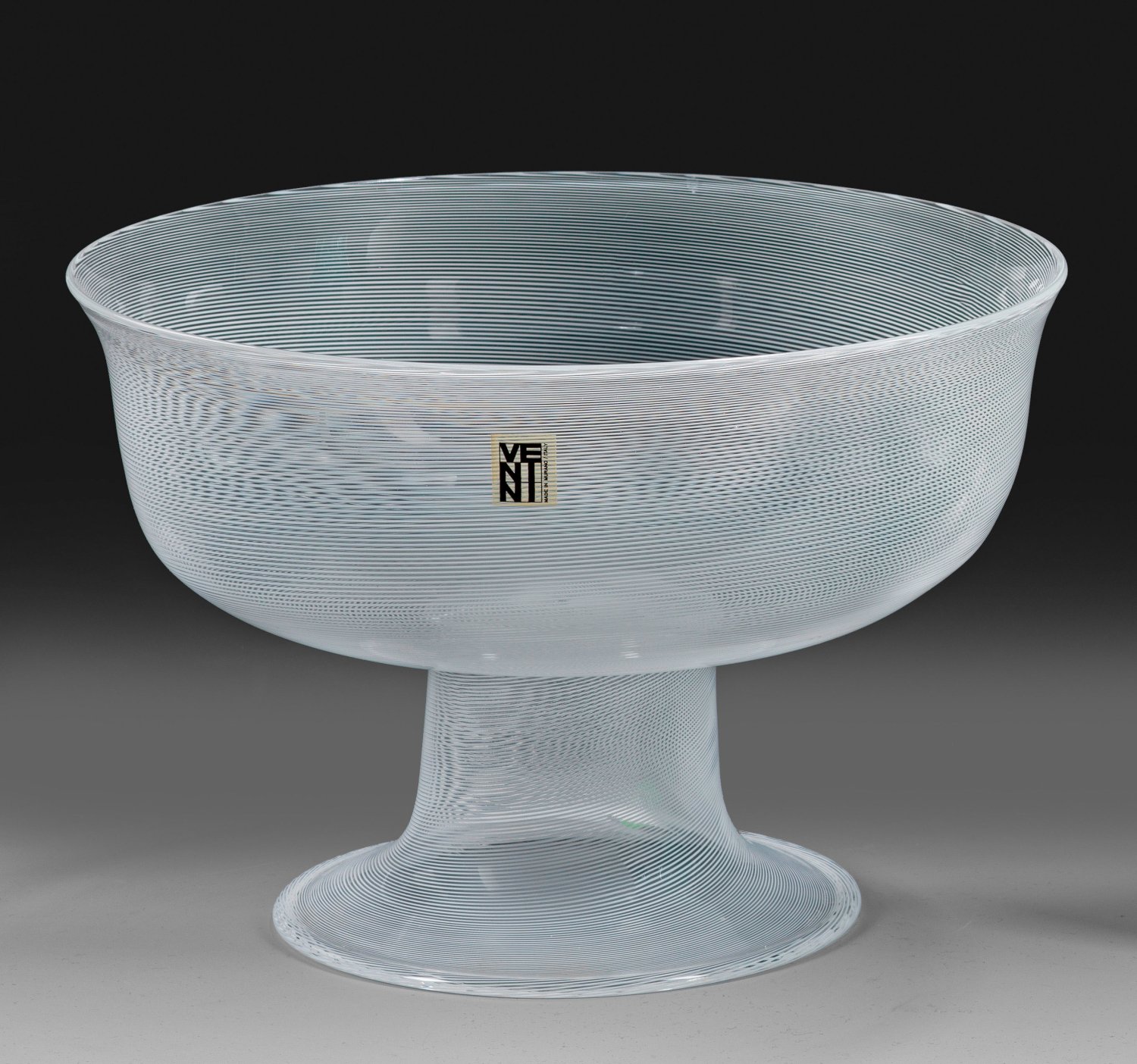 An Italian Murano footed bowl by Tapio Wirkkala for Venini. Manufacturer's label.