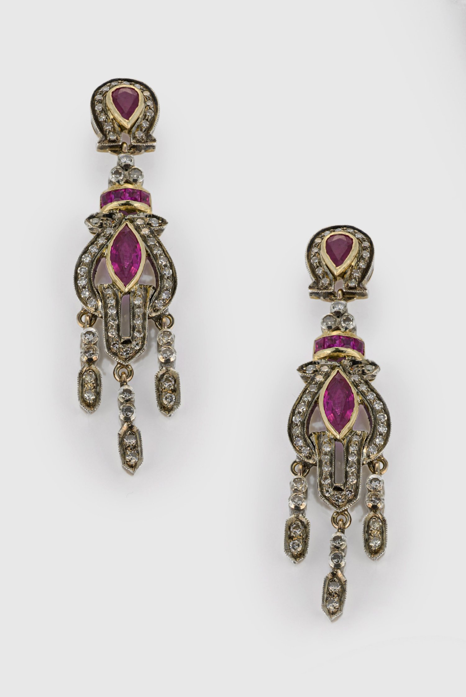 Lot 1036: Paar Belle Epoque Rubin-Ohrgehänge