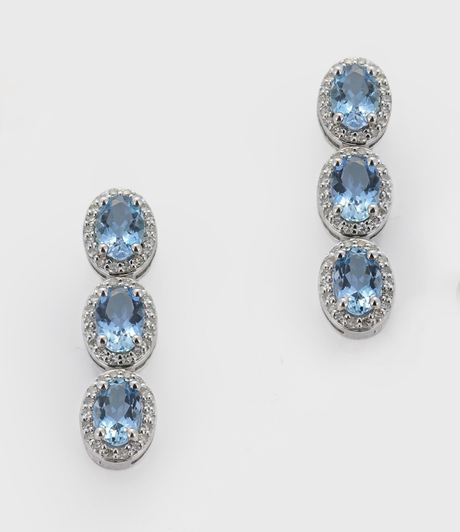 Pair of earrings set with sky blue aquamarines approx. 2,33 ct. and diamonds approx. 0,40 ct. (H/si), in 18 k white gold.