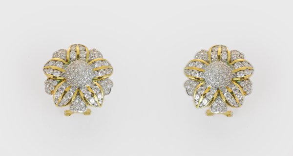 Lot 1246: Paar dekorative Diamant-Blütenohrclips