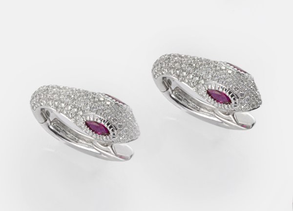 Lot 1262: Paar Schlangen-Ohrringe mit Diamanten
