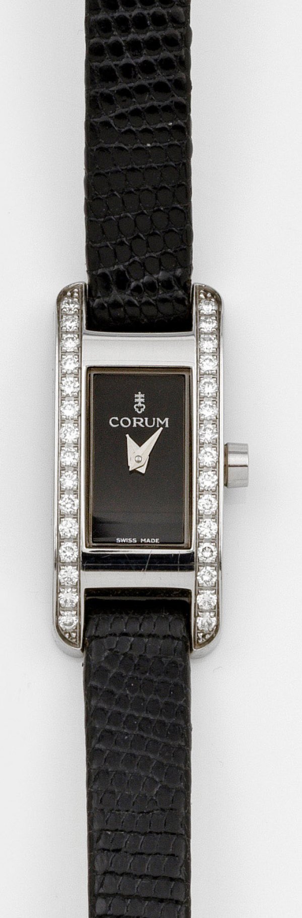 Lady's wrist watch by Corum, quartz movement, in steel. Maker's mark.