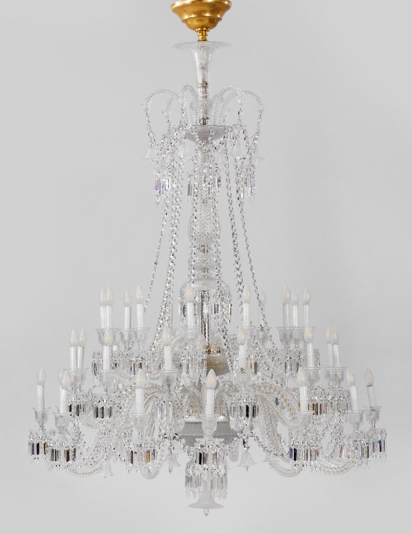 A monumental French crystal glass chandelier by Baccarat. No manufacturer's mark.
