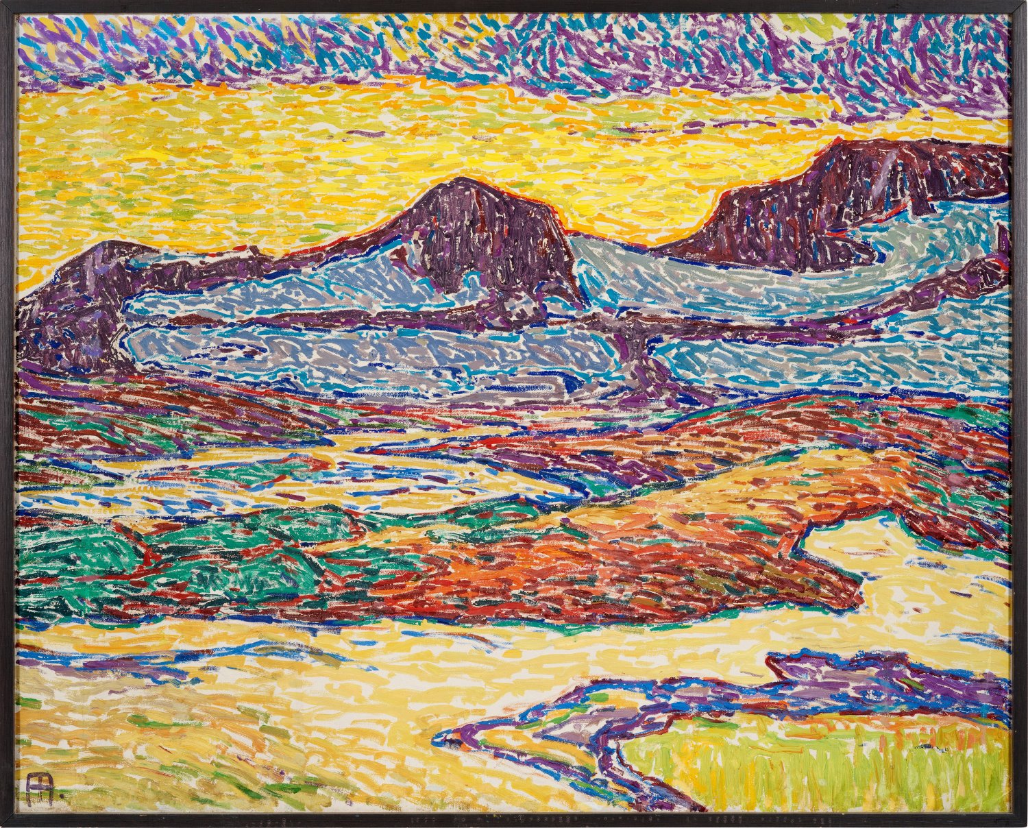 In pointillistischer Technik und leuchtendem Kolorit gemalte Landschaft, mit der Helberger sich in die Tradition der französischen Pointillisten und Fauvisten wie Derain und Matisse stellte. Der Künstler reüssierte seit 1900 in der Berliner Kunstszene, wo er zwischen 1903 und 1934 u. a. in den Galerien Cassirer und Gurlitt sowie auf den Großen Berliner Kunstausstellungen gezeigt wurde. Er malte vielfach Norwegen-Motive, aber auch Bornholm- und Brasilien-Landschaften, wobei die nachträgliche topographische Bestimmung oft nicht möglich ist. In der NS-Zeit gehörte Helberger zu den verfemten Künstlern und erhielt Berufsverbot. Öl/Lwd.; L. u. monogr.; 85 cm x 104 cm. Rahmen.