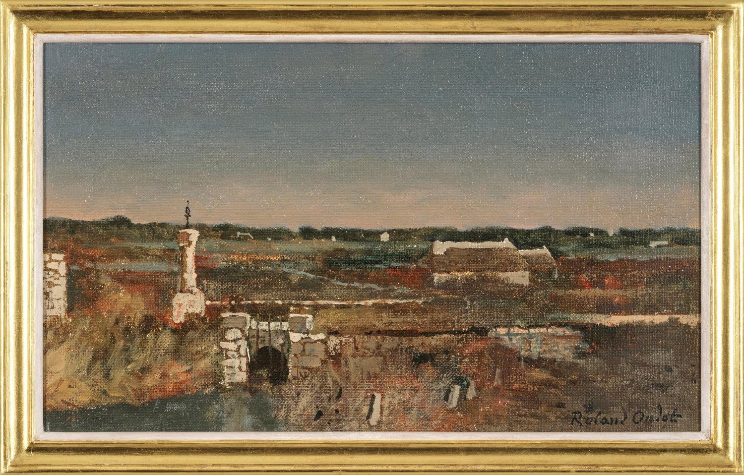 Mit weichem, breitem Duktus gemalte Landschaft des Spätimpressionisten. Oudot war 1915-1923 Assistent von Léon Bakst bei den Ballets Russes, der ihn mit den Gemälden Paul Cézannes, Pierre Bonnards und Édouard Vuillards vertraut machte. Beeinflusst von der französischen Kunst der Moderne und zugleich in der Tradition von Camille Corot, entwickelte er seinen eigenen Stil. 1919 debütierte Oudot auf dem Salon d'Automne, es folgten zahlreiche Einzelausstellungen und Ausstellungsbeteiligungen, u. a. bei der Biennale in Venedig. 1935 schloss sich Oudot der Künstlergruppe "Les peintres de la réalité poétique" (Maler der poetischen Realität) an. Öl/Lwd.; U. r. sign.; Verso Galerieetikett mit Bildtitel. 33 cm x 55 cm. Rahmen.
