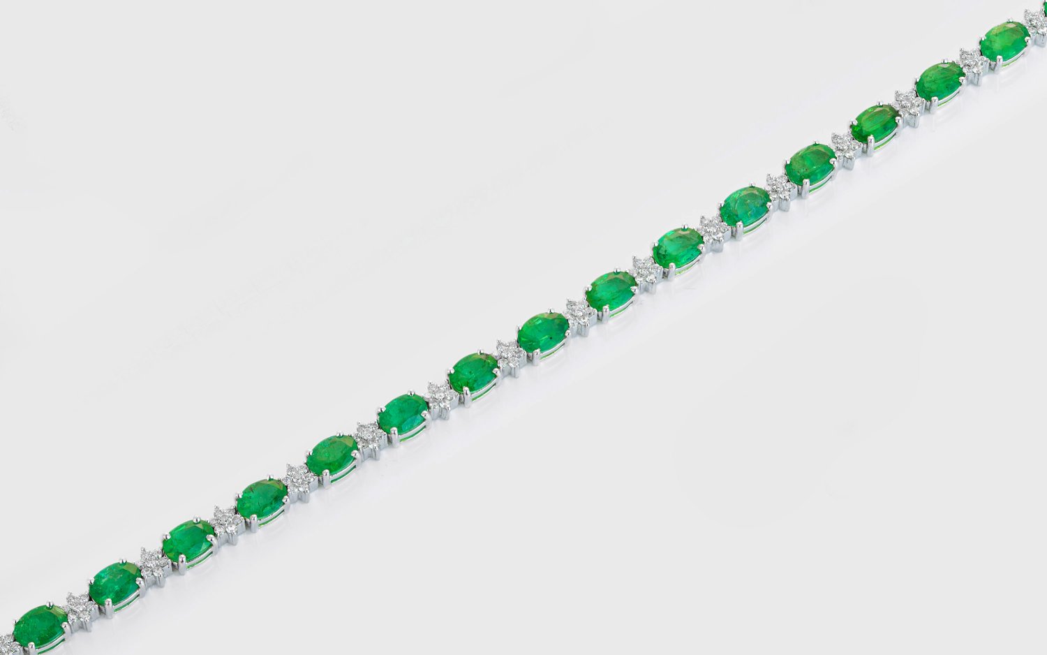 Lot 923: Elegantes Sambia Smaragd-Diamantarmband