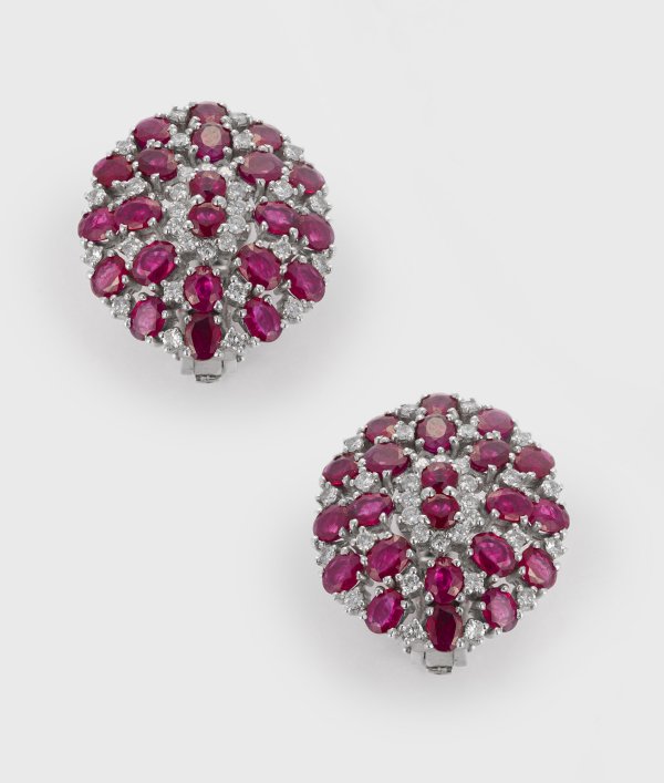 Lot 943: Paar glamouröse Burma-Rubin-Brillant-Ohrclips