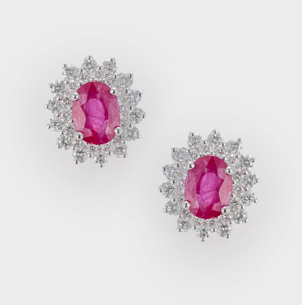 Lot 947: Paar klassische Rubin-Brillantohrringe
