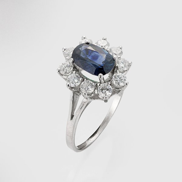 Lot 966: Klassischer Saphir-Brillant-Ring