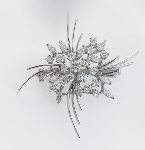 Brooch set with diamonds approx. 0,90 ct. (G-H/vvs-vs), in 18 k white gold.