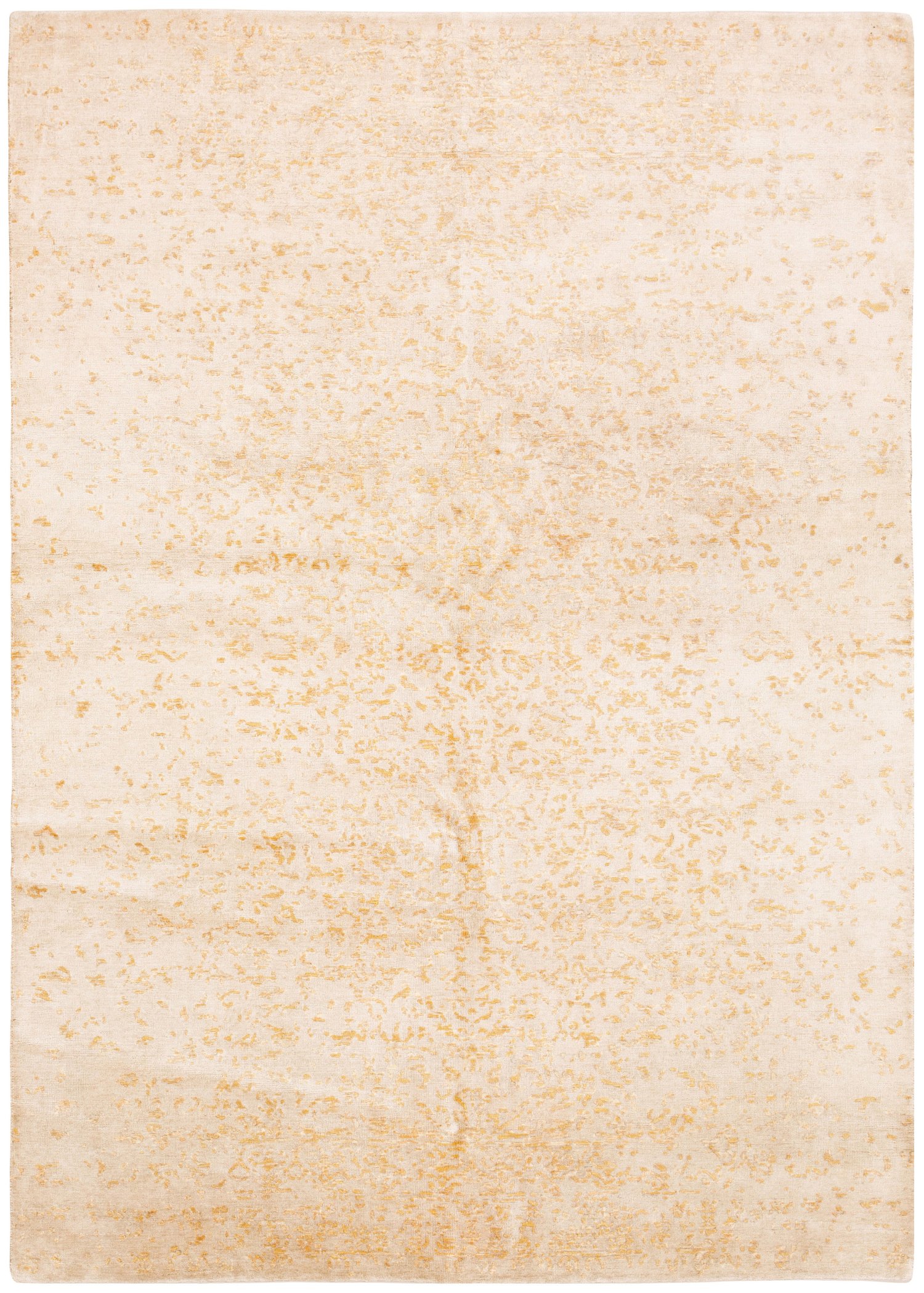 Indien. Wolle mit Seide auf Baumwolle. Reliefmuster. Auf cremefarbenem Fond flächendeckende Musterung en couleur mit Anlehnung an traditionelle Teppichmuster aus Täbris im Vintage-Stil. 171 cm x 229 cm.