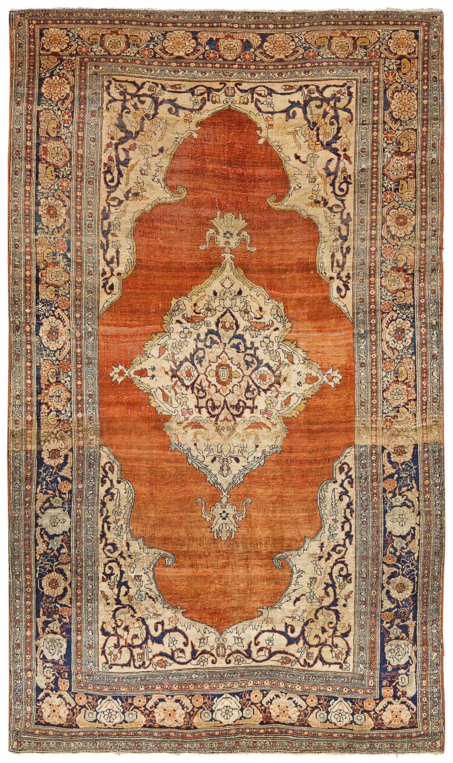 Türkei. Um 1900-1920. Seide auf Seide. Im hellroten Innenfeld großes Zentralmedaillon sowie breite, passig geschweifte Ecklösungen. Umlaufend breite, mehrteilige Bordüre aus dicht angeordneten Blütenrosetten, begrenzt von schmalen, teilw. blütengefüllten Bändern. 179 cm x 104 cm.