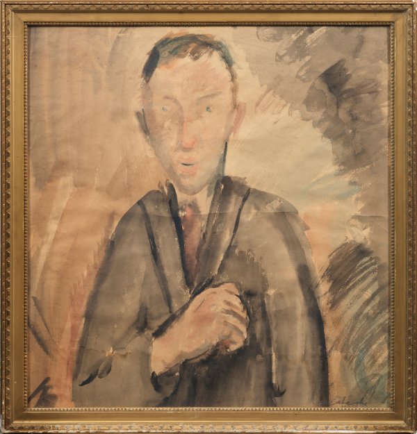 In lockerem, expressionistischen Duktus angelegtes Bildnis Libeskis, der 1950 nach Wien ging und Mitglied der dortigen Sezession war. Aquarell/Papier. R. u. sign.; Verso Etikett der Hofkunsthandlung L. T. Neumann, Wien. Ca. 66 cm x 60 cm. Rahmen.