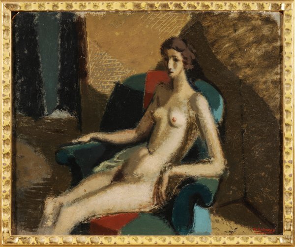 Wacker kam 1926 nach Frankreich und wurde hier Teil der avantgardistischen Pariser Kunstszene. Seine große Zeit waren die 1930er Jahre, in denen auch das vorliegende Bild entstand, als er in der Künstlergruppe "Témoignage" mit Gleichgesinnten verkehrte und sich an ihren Ausstellungen beteiligte. Öl/Karton. R. u. sign.; Bildträger in den oberen Ecken leicht besch.; 38 cm x 46 cm. Rahmen.