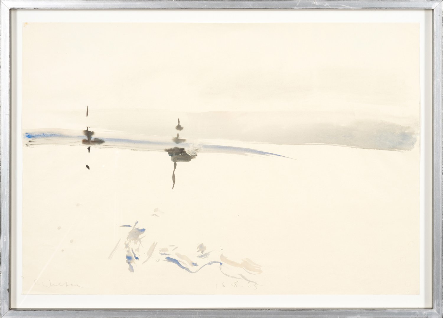 Aquarell/Papier, tagesdatiert 16.8.65. L. u. sign.; Wachter studierte Malerei und Bildhauerei an der Akademie Karlsruhe, ab 1954 freischaffend. Blatt 44,5 cm x 64,5 cm. Rahmen.