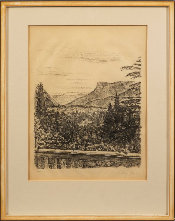 Lithographie/Papier. Sign. u. nummeriert 45/100. Das Motiv entstand vermutlich während eines Kuraufenthalts des Künstlers in Meran 1921. Darstellungsmaß 31 cm x 24 cm. Rahmen.