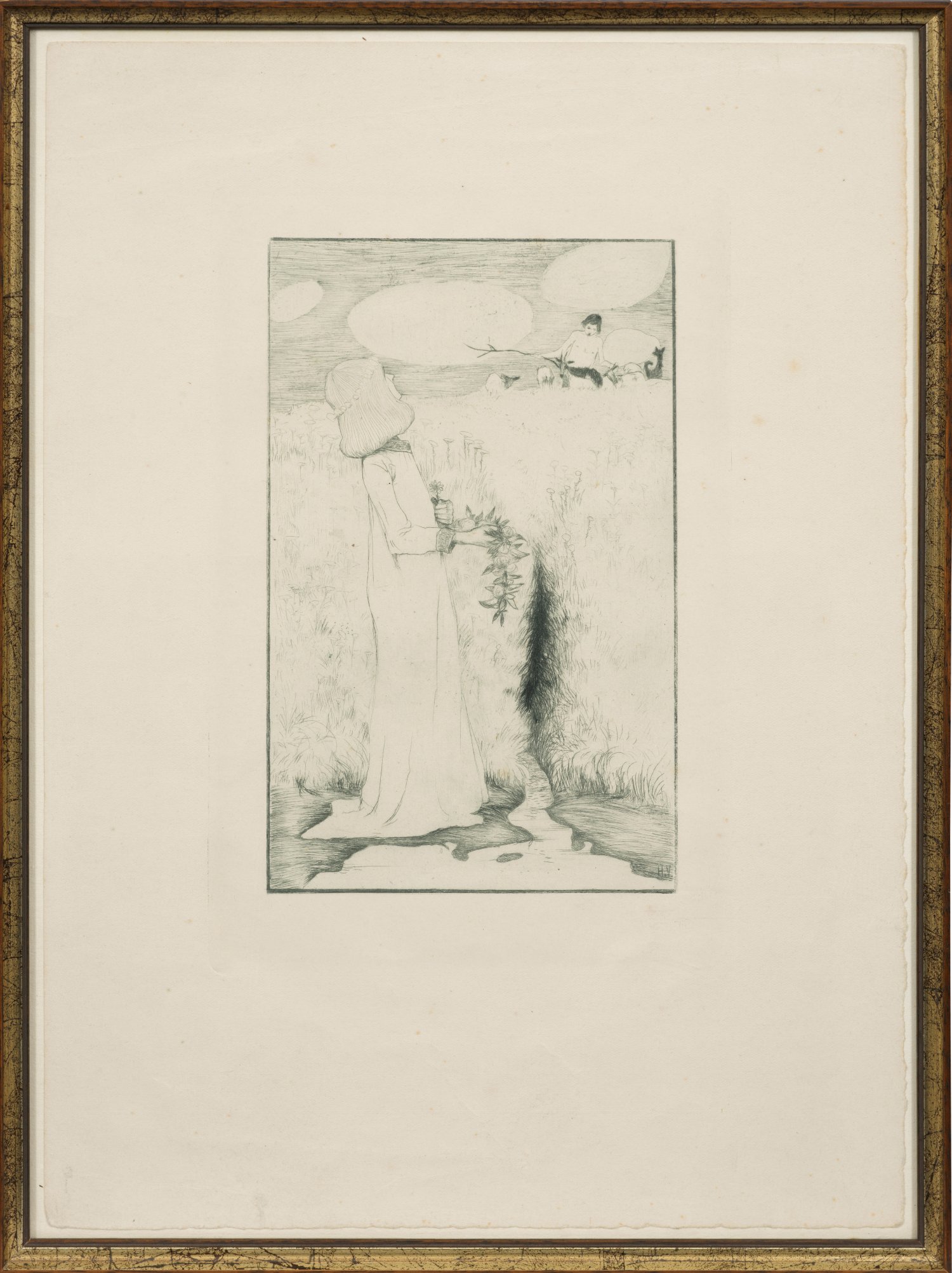 Etching in green on laid paper, 1894. Monogrammed in the print. Slightly stained.