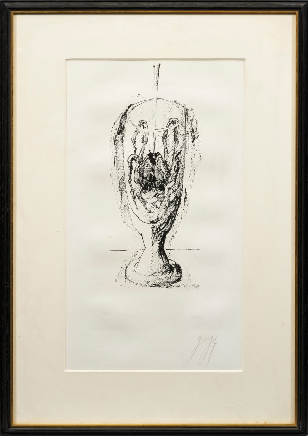 Lithographie/Papier, 1970. R. u. sign.; Aus dem Portfolio "Original Graphik" mit zwei Siebdrucken und fünf Lithographien, erschienen in einer Gesamtauflage von 350 Expl. bei Edition Argelander, Bonn 1970. Darstellung ca. 38 cm x 15 cm. 52 cm x 27,5 cm (Passepartoutausschnitt). Rahmen.